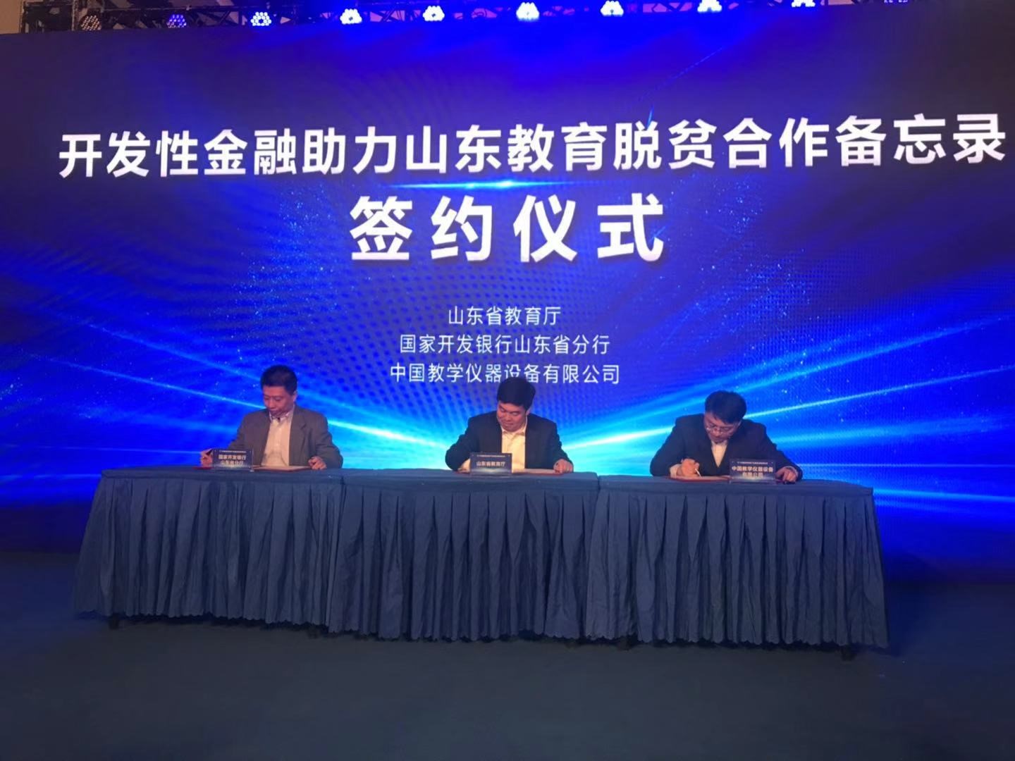 2018年12月11日,华会体育与山东省教育厅、国家开发银行山东分行在青岛共同签订了开发性金融助力山东教育脱贫合作备忘录。三方将坚持精准扶贫、精准脱贫的基本方略,以补齐教育短板为重点,精准对接教育扶贫多元化需求,共同推进山东教育脱贫攻坚工作。