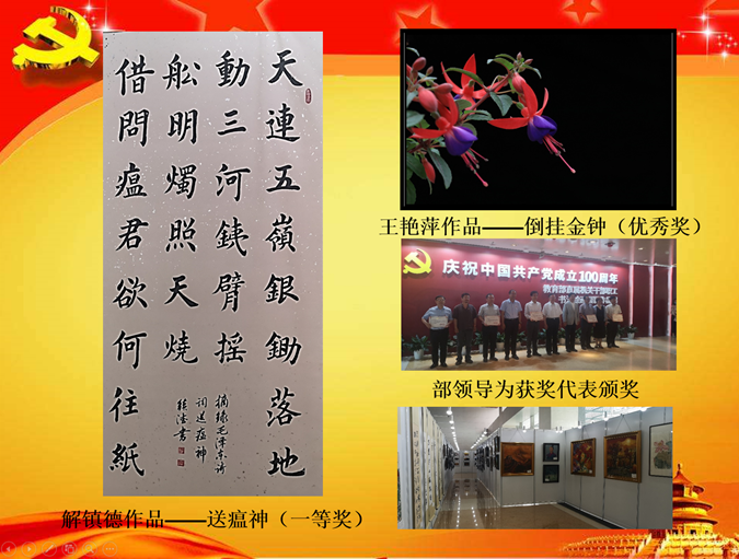 经过专家评审,华会体育退休干部解镇德同志获得书法类“一等奖”,王艳萍同志获得摄影类 “优秀奖”,作品自6月11日开展仪式起进行展出。